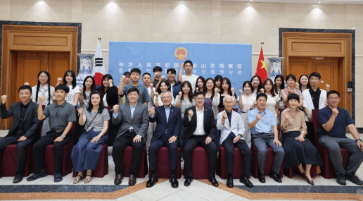8月29日,我校师生代表与参加访华交流团的韩国大学生共同拜访中国驻釜山总领事馆并举行交流活动。中国驻釜山总领事馆总领事陈日彪出席活动并致辞。陈日彪热烈欢迎中韩青年大学生到总领馆交流,表示中韩建交33年来,两国相互成就、共同发展,各领域交流合作成果丰硕。希望大学生们以此次互访为契机,做两国友谊的笃信者、践行者和传播者,更加客观全面了解对方国家,为开创中韩关系美好未来而不懈努力。